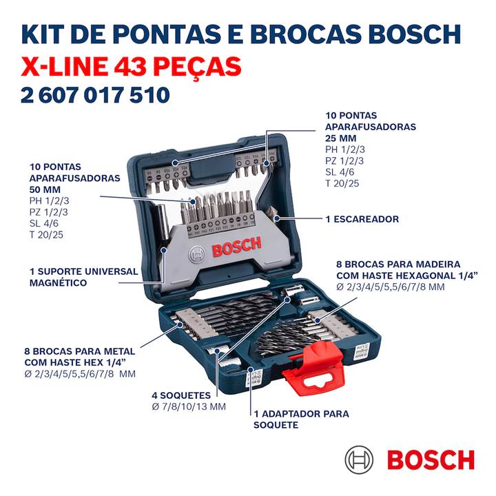Kit De Pontas E Brocas Bosch X-Line 43 Peças
